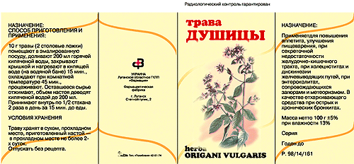 Дизайн упаковки «Трава душицы», сделанный дизайнерской студией «Зина дизайн» для луганского завода <Фармация> |