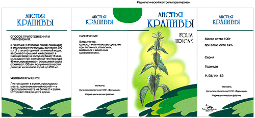 Дизайн упаковки «Листья крапивы», сделанный дизайнерской студией «Зина дизайн» для луганского завода <Фармация> |