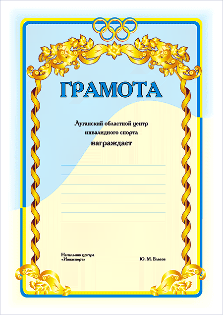 Дизайн грамоты для Луганского областного центра инвалидного спорта
